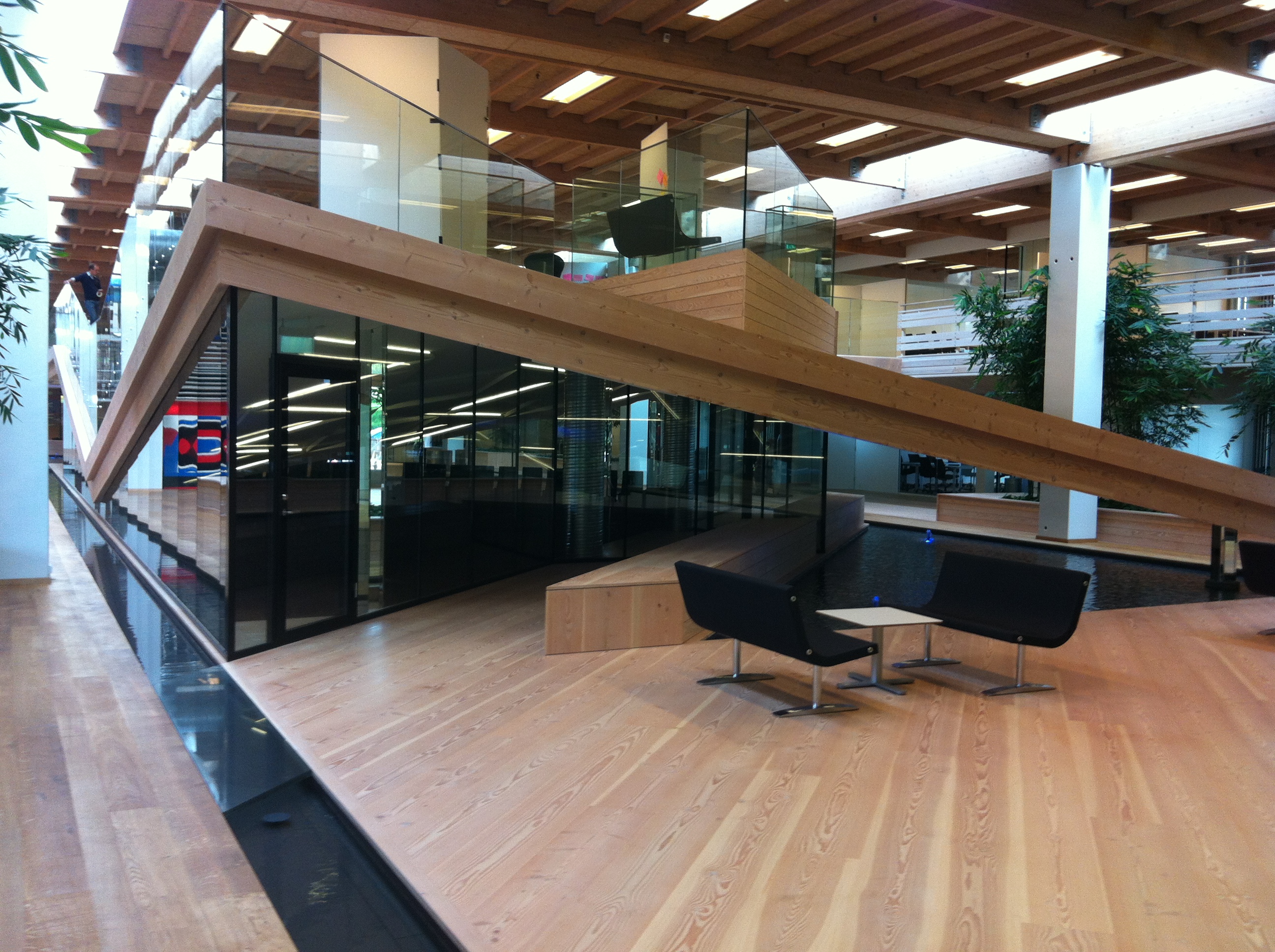 Gulvet nedenfor bliver brugt på et kontor, og er fremstillet af sæbebehandlet daugeles med skibsfuge. Gulvet er nemt at vedligeholde og bevarer sit flotte udseende.