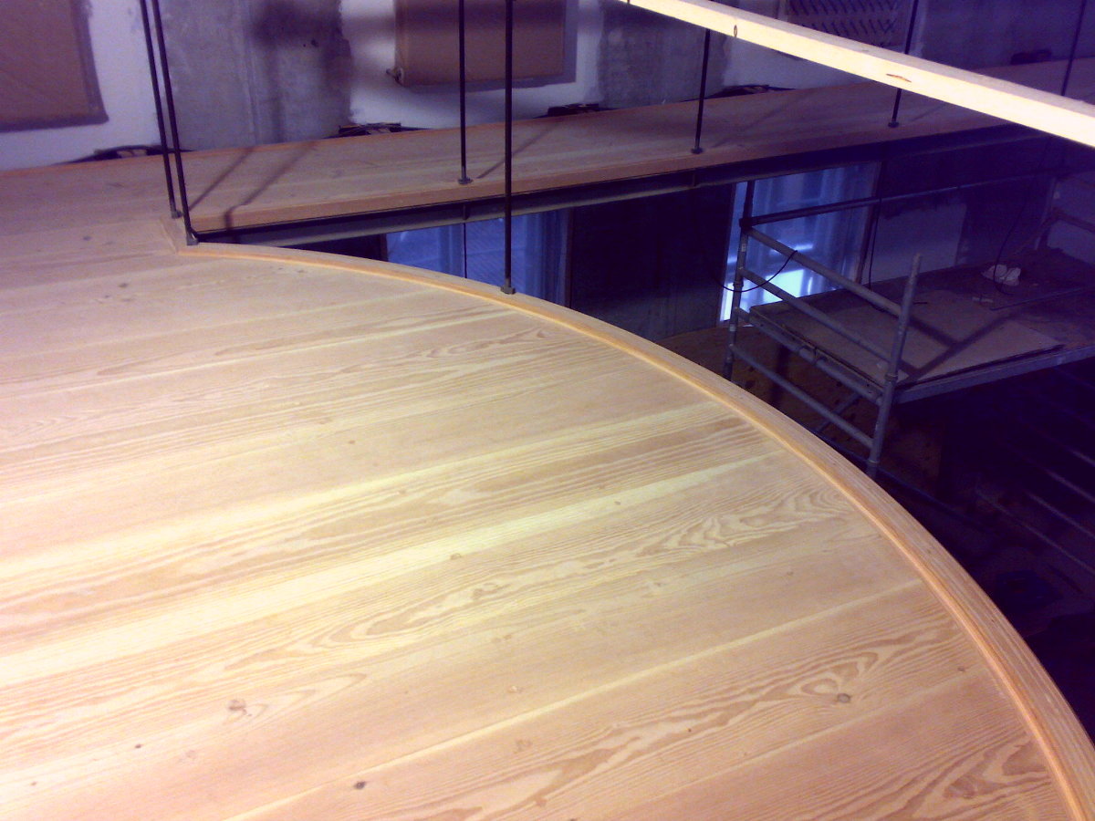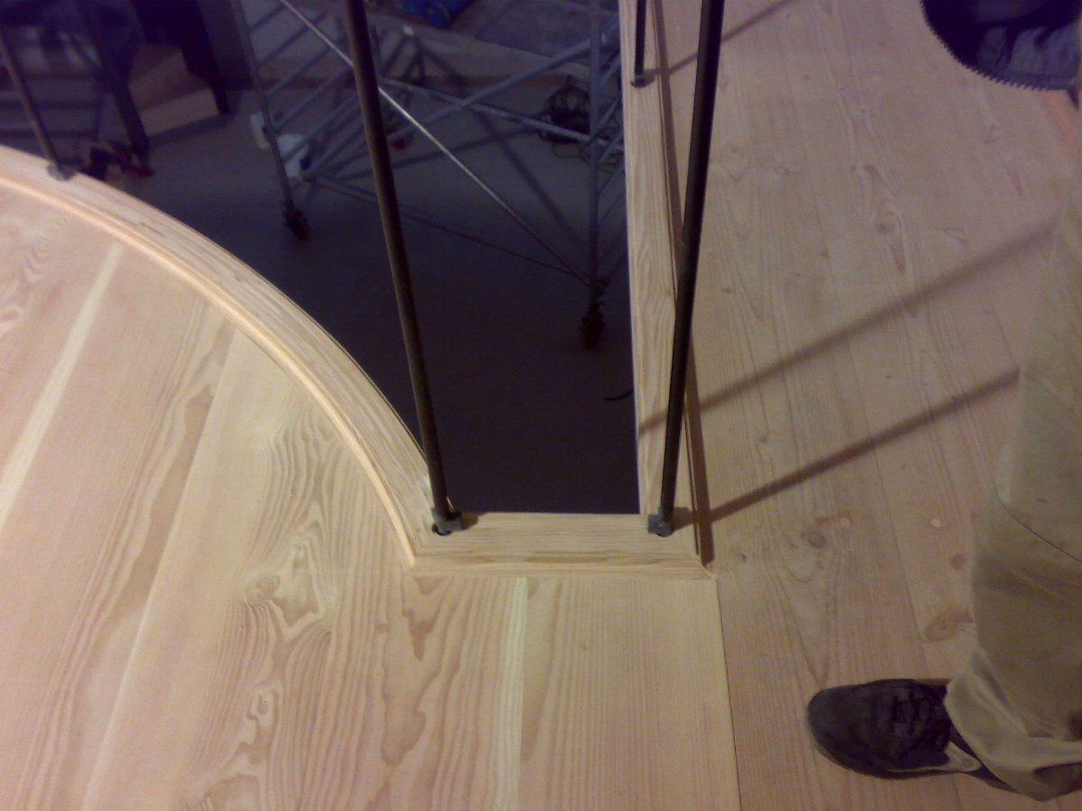 Her ses billeder af gulvet til balkonen på Klelund Slot. Gulvet er fremstillet af sæbebehandlet Daugeles. Bemærk de flotte afrundede detaljer på kanterne.