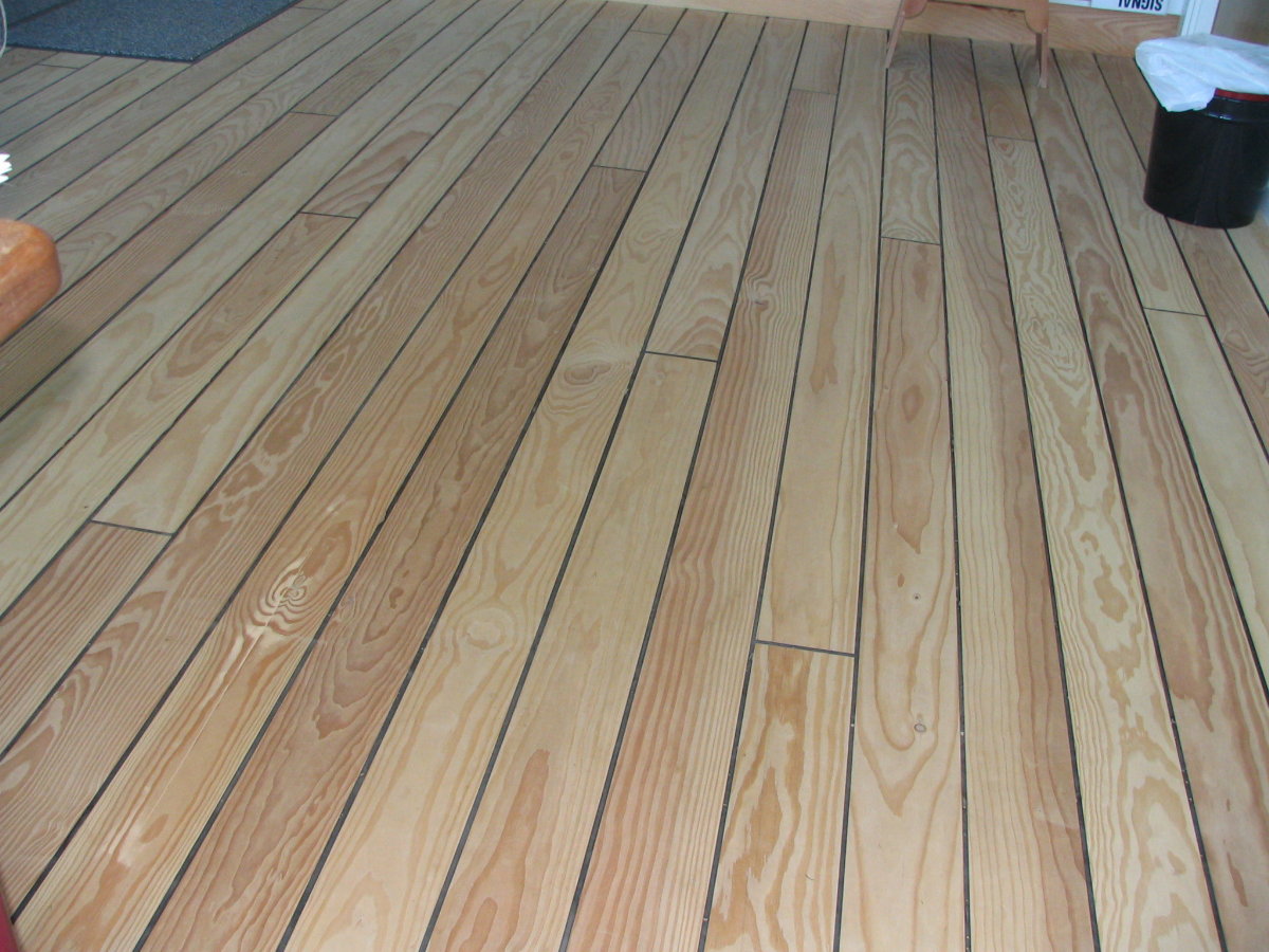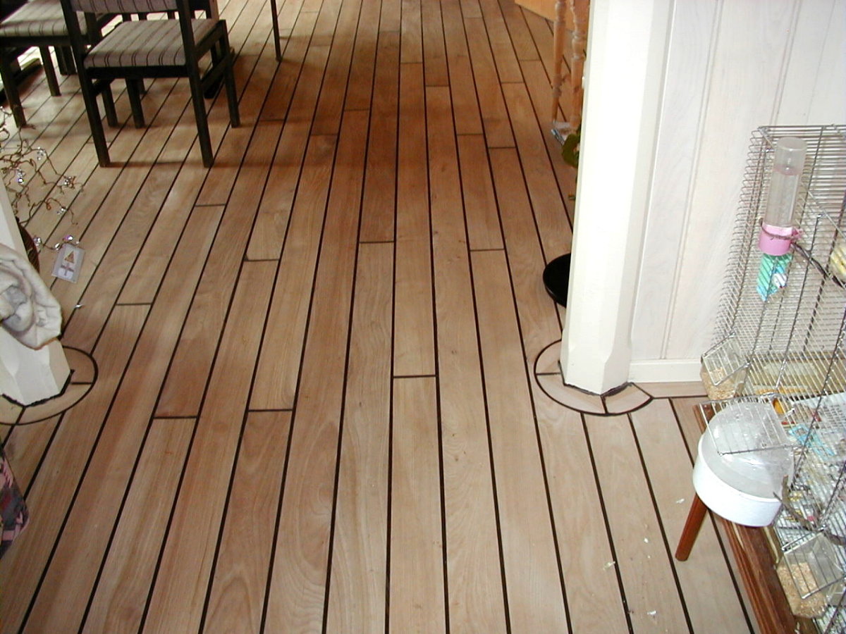 Her ses et gulv, der er fremstillet af sæbebehandlet elmetræ med skibsfuge.