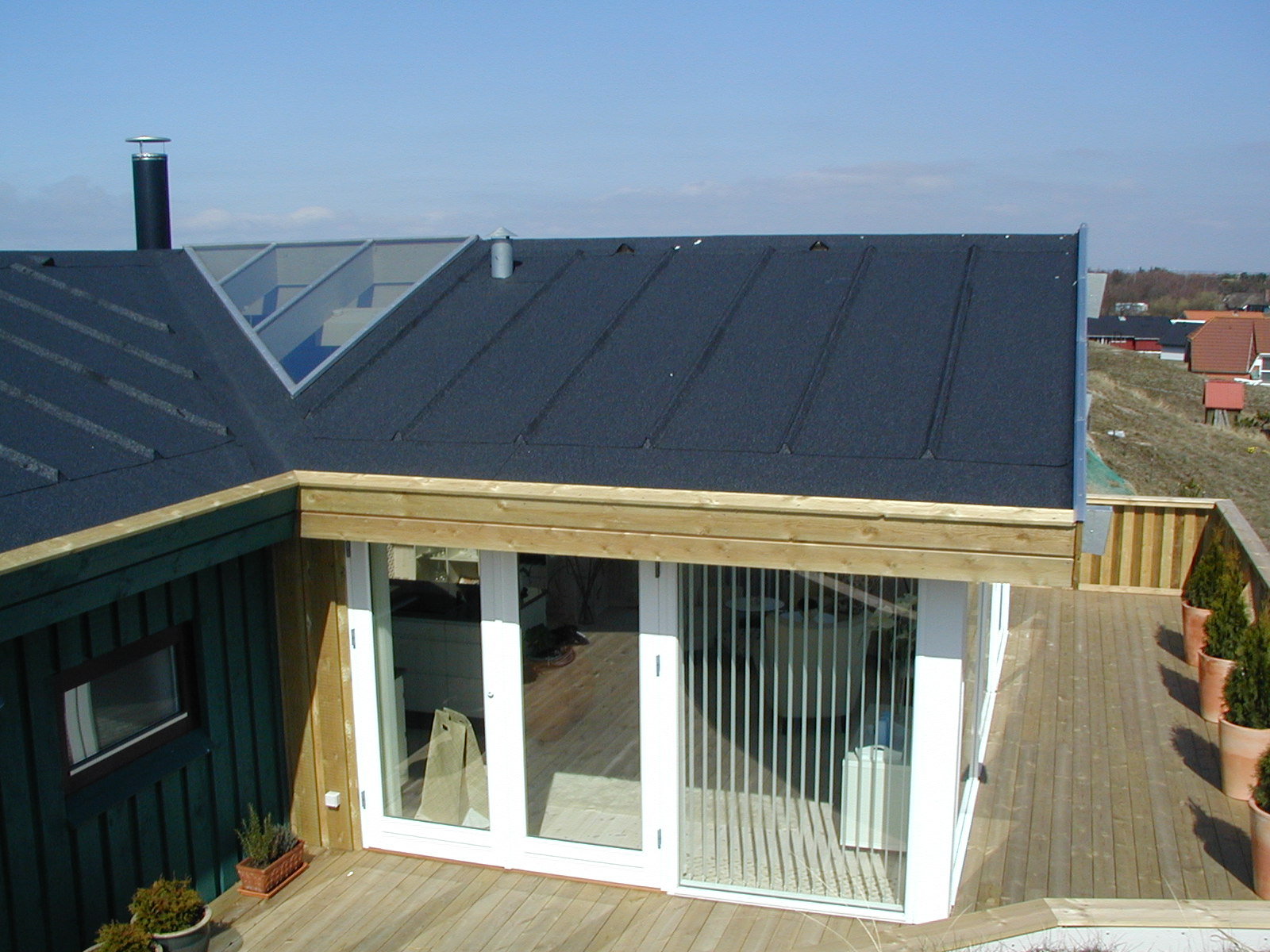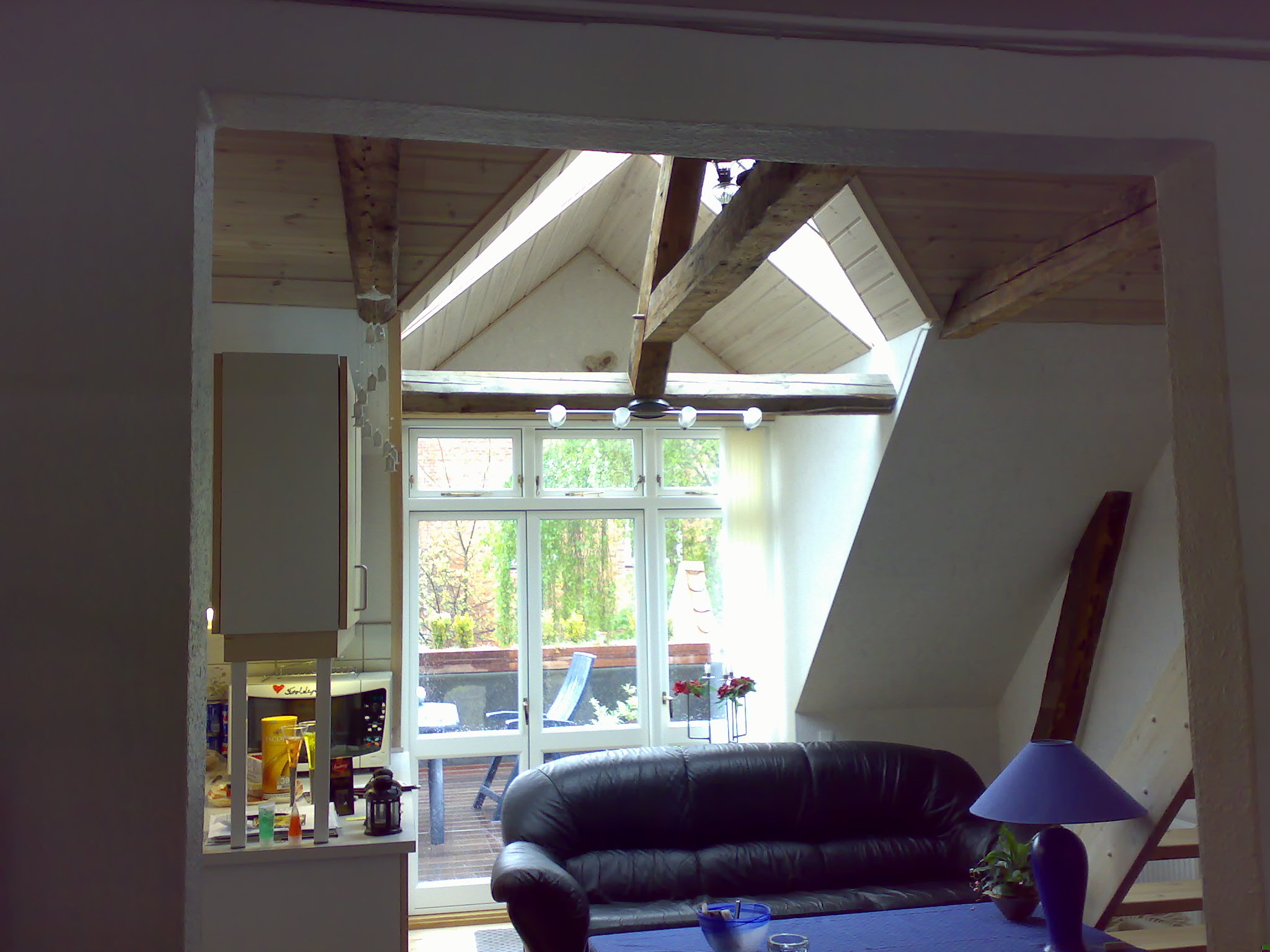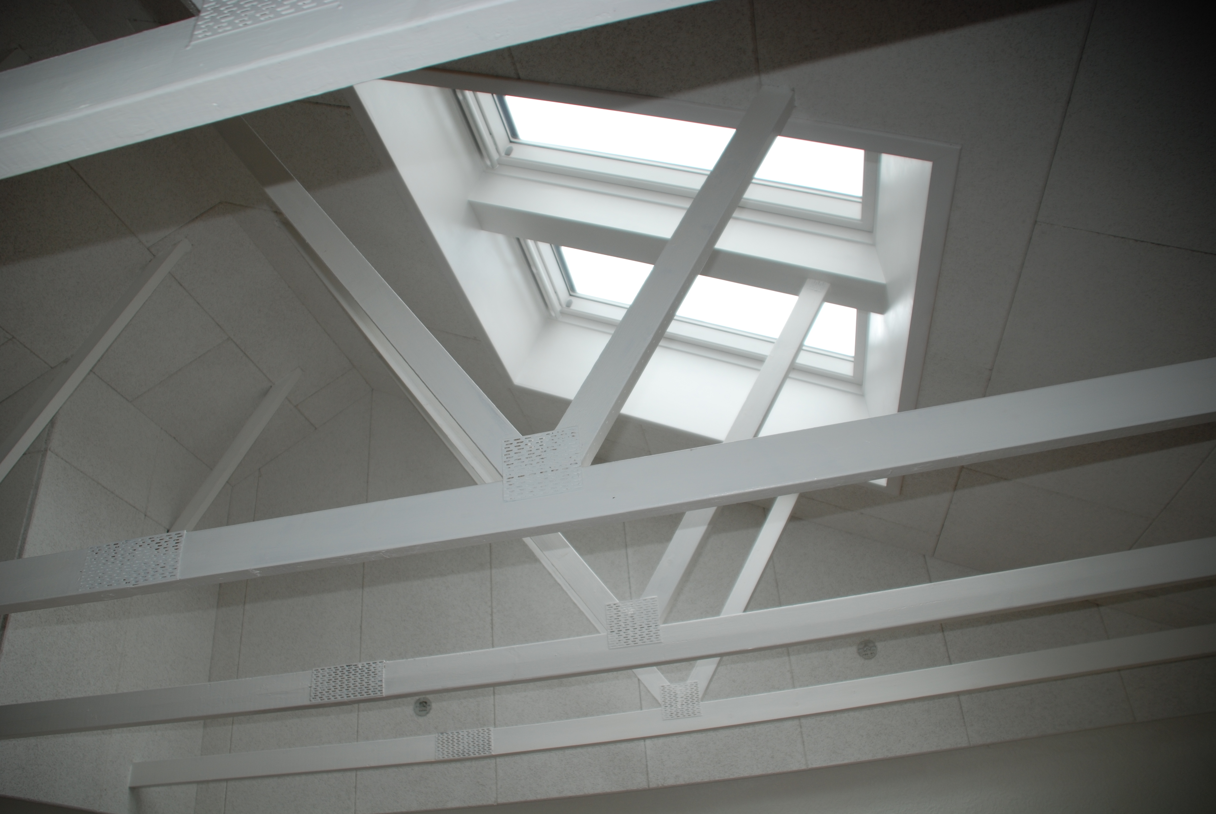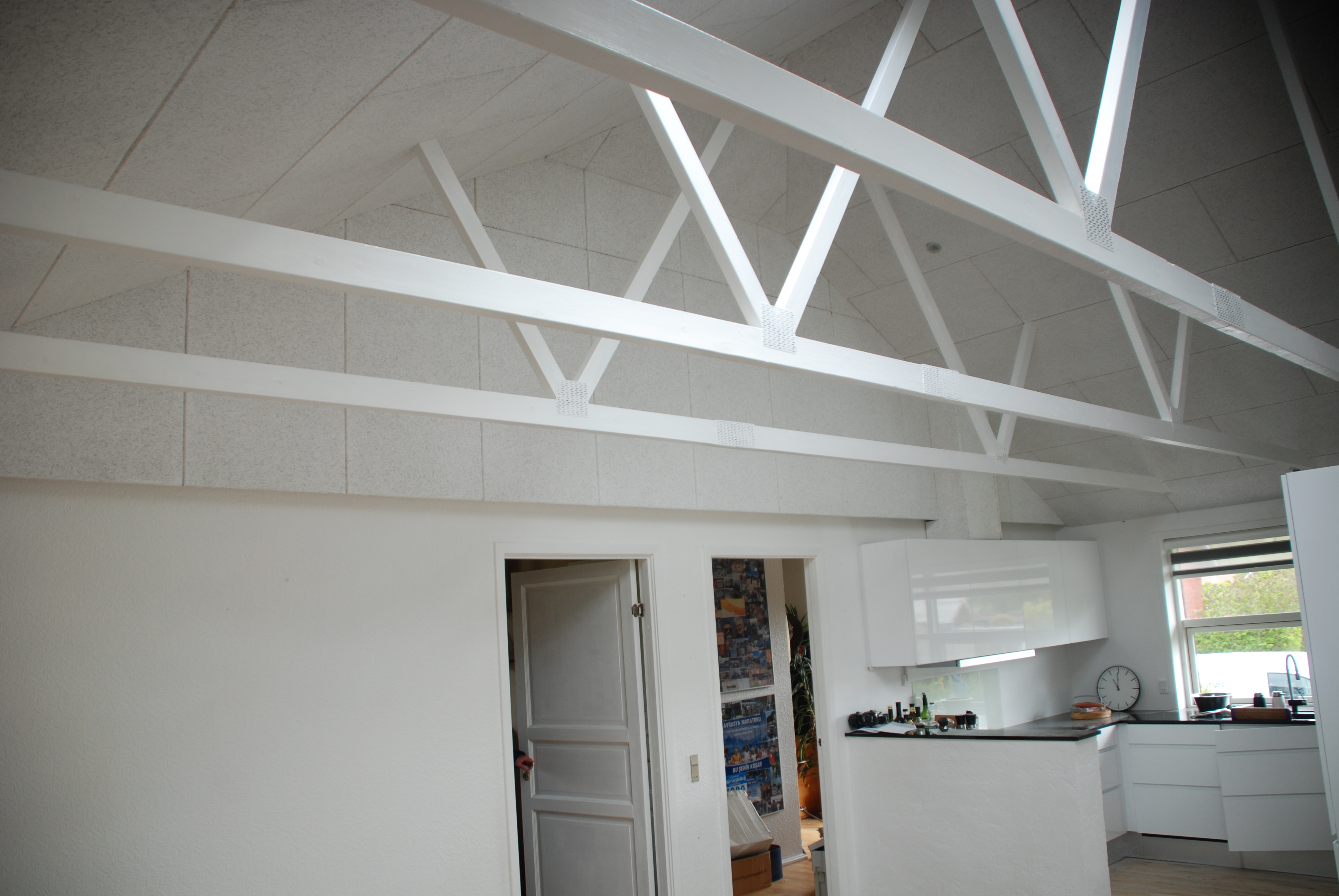 Her er spærene blevet synlig og der er monteret ovenlys og micro Heradesign plader på loft.