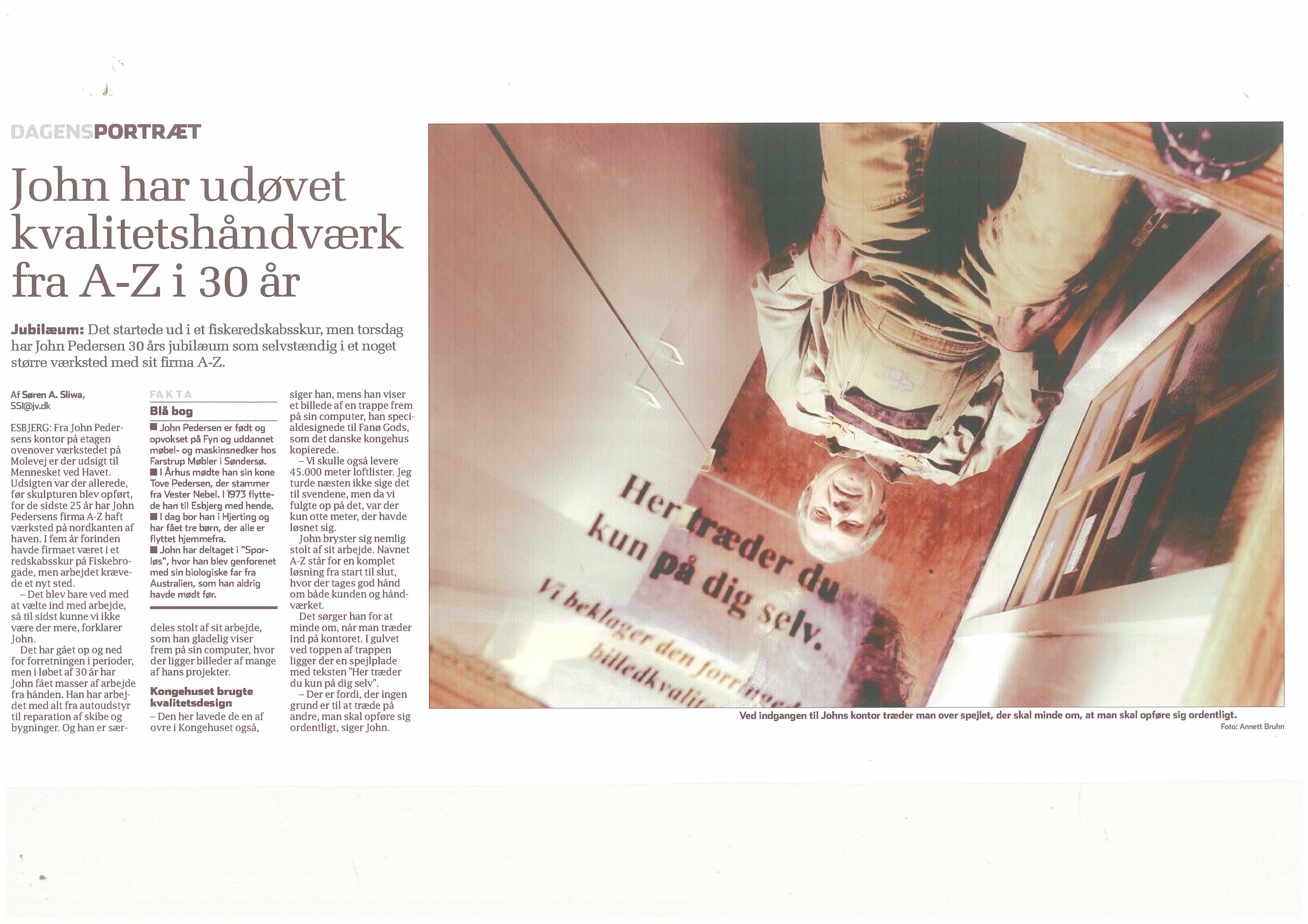 Alsidighed er et af nøgleordene hos A-Z-Snedkeriet.dk. Vi har lavet specialopgaver for MacArtney samt diverse forme til f.eks. glaskuplerne i lyshøjen i Kjersing. Af størrer specialopgaver kan nævnes fremstilling af lofter og trapper på Fænø Gods, indretning af showroom for Kvadrat A/S samt interiørrenovering hos Danfoss.